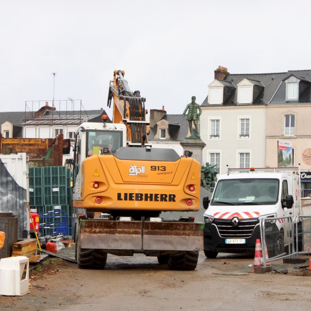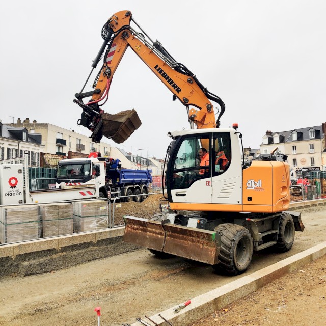La place Georges Bouttier au Mans se refait une beauté ! ATP2L & T2L est présent afin d’accompagner notre client ID Verde. Notre pelle Liebherr R918 a été mise en place pour effectuer le terrassement et l’aménagement du rond-point.