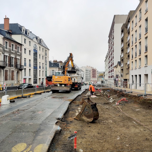 Sur la place George-Washington, les travaux d’aménagements suivent leur cours en vue des lignes de bus « Chronolignes ».